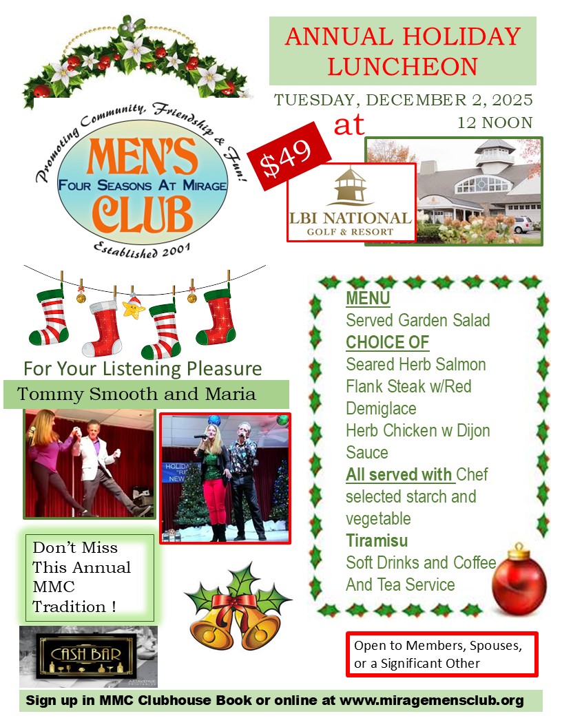 Come to our Annual Holiday Member meeting.  Bring a guest, be it a friend, significant other or your spouse.